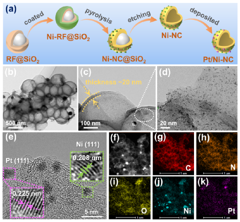 图1 Pt-Ni-C催化剂的合成路线和微观结构表征 ©